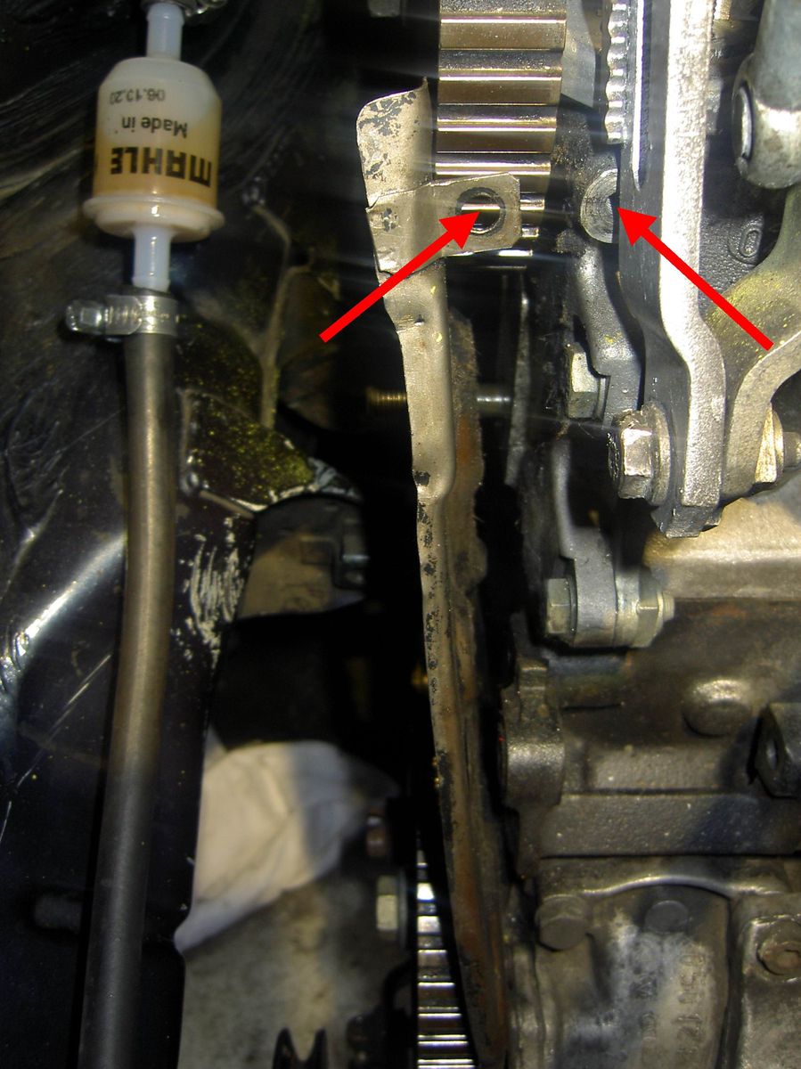 Die Macke in der Schwungscheibe steht immer gleich weil diese durch die versetzten Schraubenlöcher nur ein mal passt. Der Pfeil auf der unteren Zahnriemenabdeckung kann auch nicht wandern.