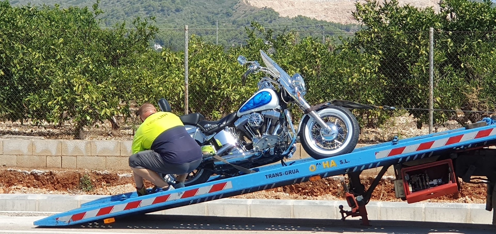 • Ich war heute, bei gut über 35° im Schatten, mit der Vespa unterwegs, etwas besorgen, kurz vor Pego lag ein Eisenhaufen im Straßengraben, der Hinterreifen war platt, der Fahrer wohl schon 🚑 abgeholt. Der Abschleppdienst war alleine vor Ort und telefonierte gerade nach Hilfe. Da ich ja ein guter Mensch 🙄🙈 bin, bot ich ihm an zu helfen. Wir schafften es dann auch gemeinsam =O