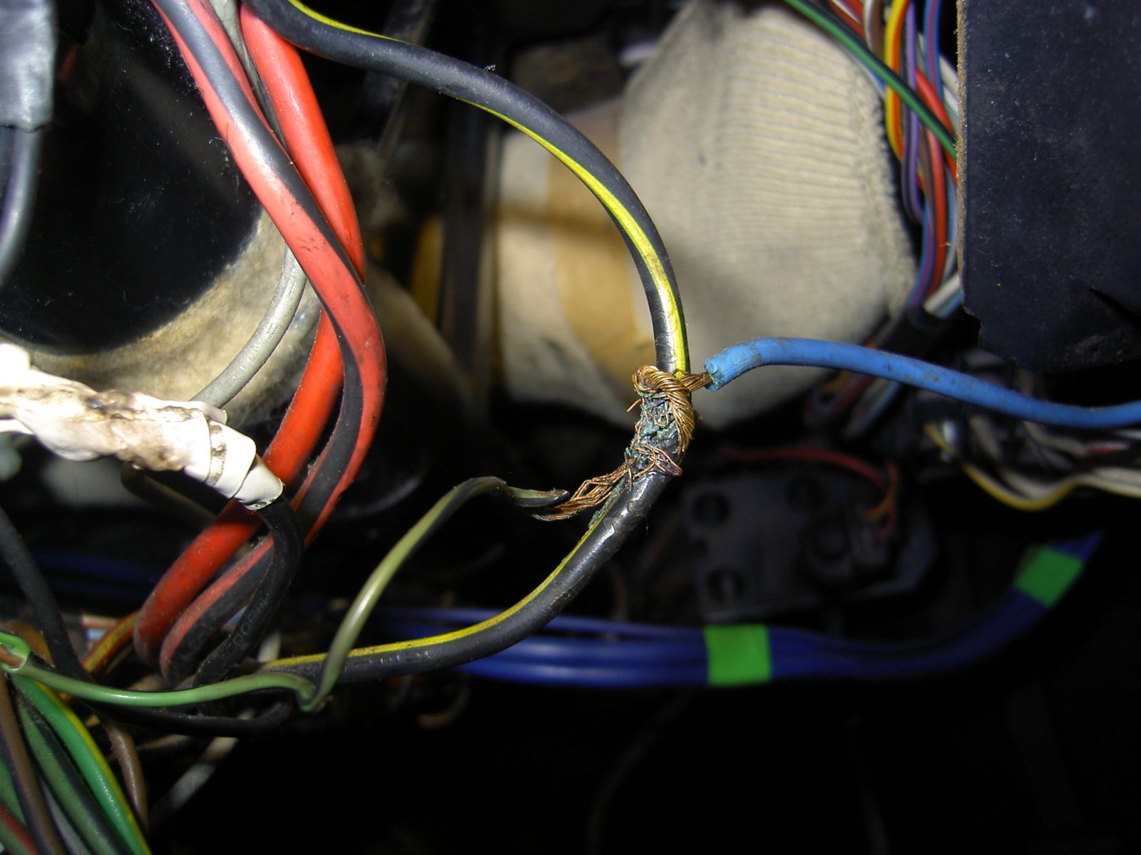 Woher Strom nehmen ? Ah jetzt ja - ein Spenderkabel ! Da kann ich das drumtüddeln ! Ich ritze einfach die Isolierung an und gut is:
