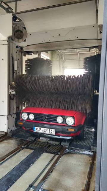 Der Golf 2 ist schon seit 2008 bei uns als ewiges Winterauto und Wanderpokal innerhalb der Familie, der geht ab heute Nacht schlafen bis November. Wenn der frisch gewaxt aus der Waschstraße kommt, ist das immer ein Grund zur Freude...