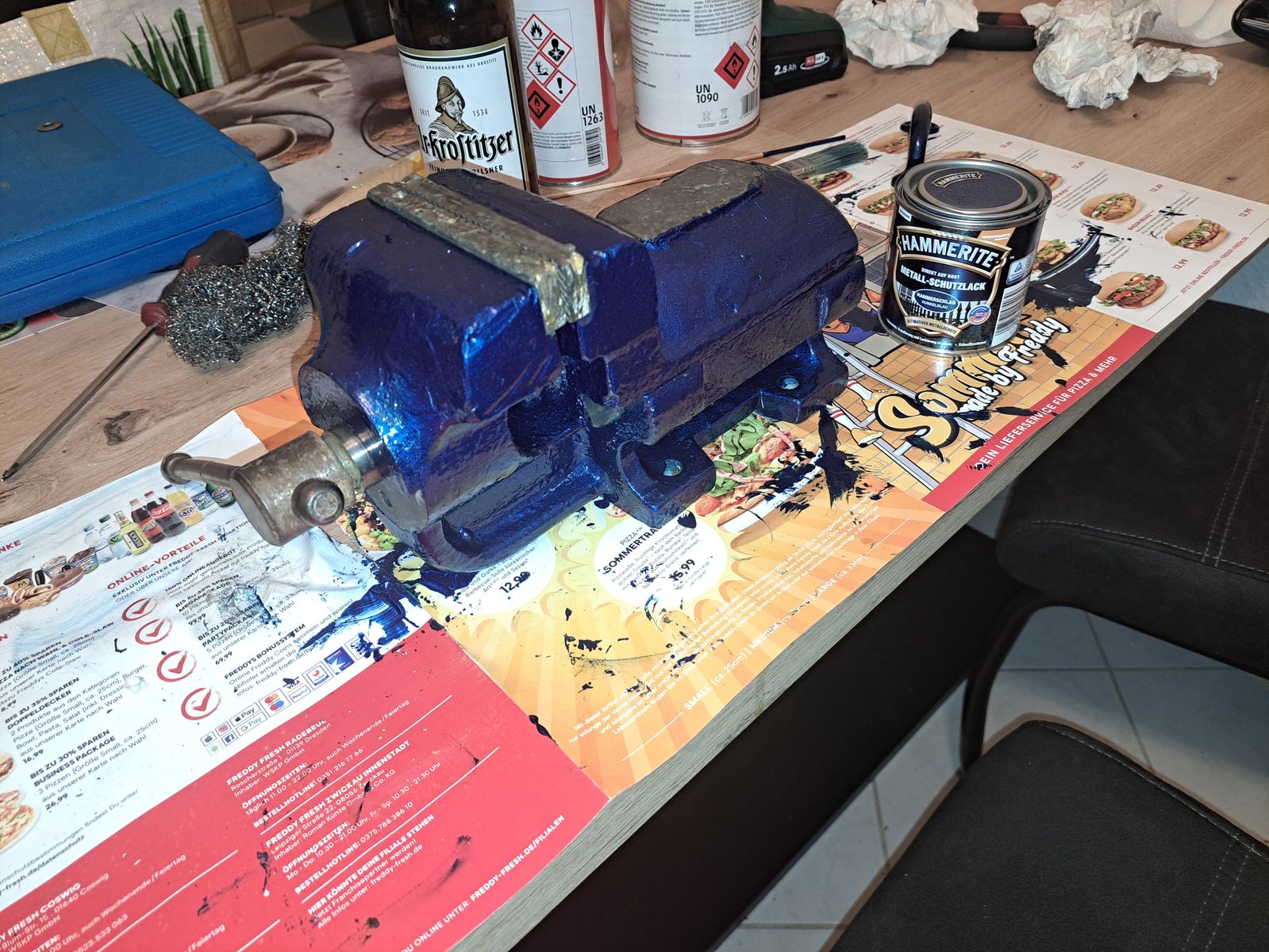Da hatte ich ihn aber schon im Geschirrspüler. Der ehemalige Betreiber der Werkstatt hat sehr gerne mit diesem Karipol421 Graphitfett gearbeitet. Damit war der gesamte Schraubstock eingesaut.