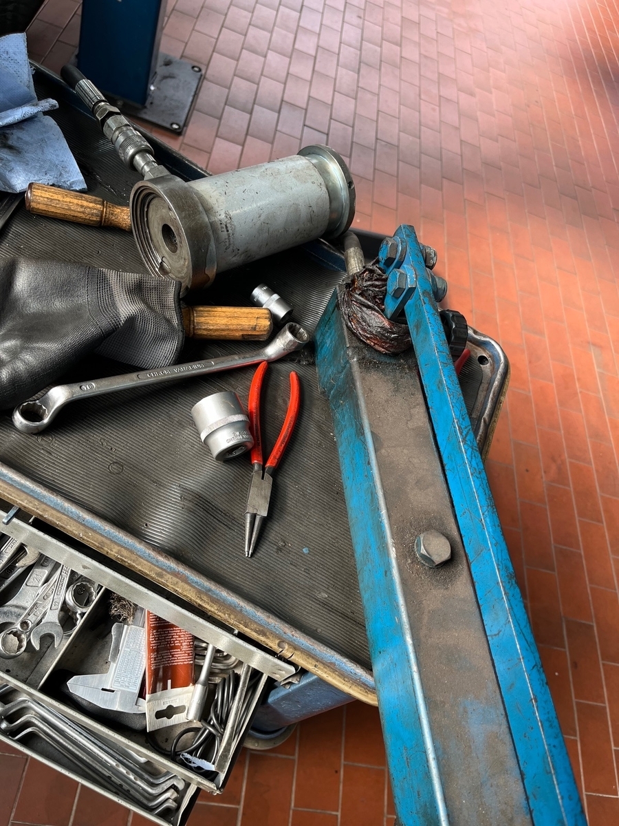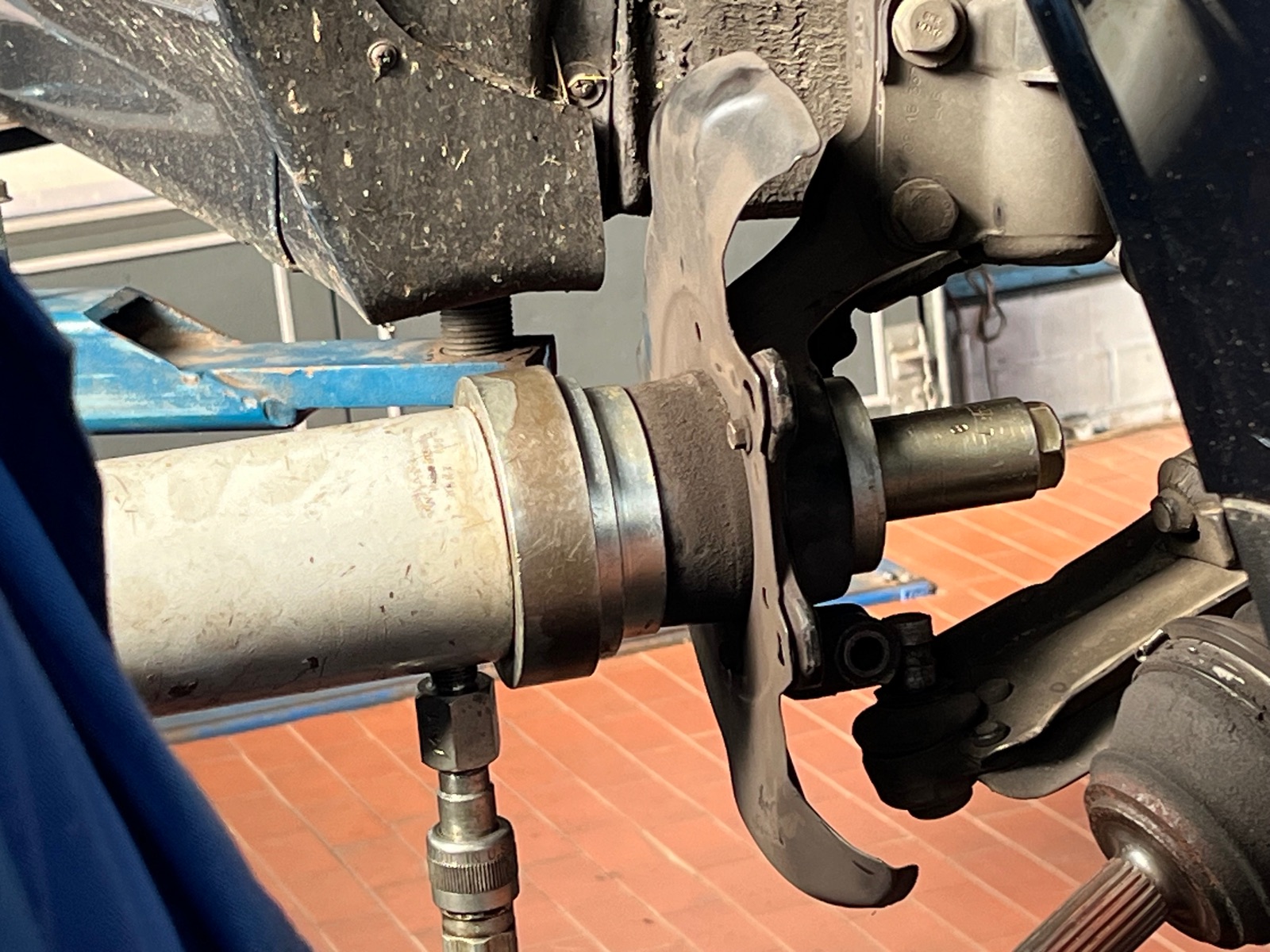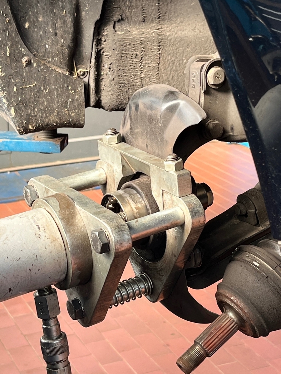 Die Werkstatt konnte mit einer speziellen Hydraulikpresse die Reparatur am eingebauten Federbein ausführen, sodass eine Vermessung der Vorderachse überflüssig war.