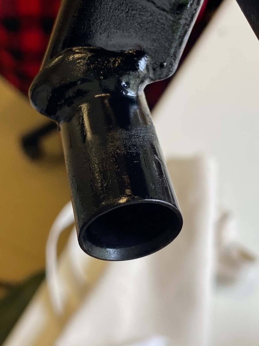 Ich müsste jetzt alles nochmal aufschrauben, um dieses Kunststoffrohr wieder hoch zo kriegen. Es befindet sich zwar noch hinter der Lenksäule und der Klammer, aber eben ein Stück weiter unten.
