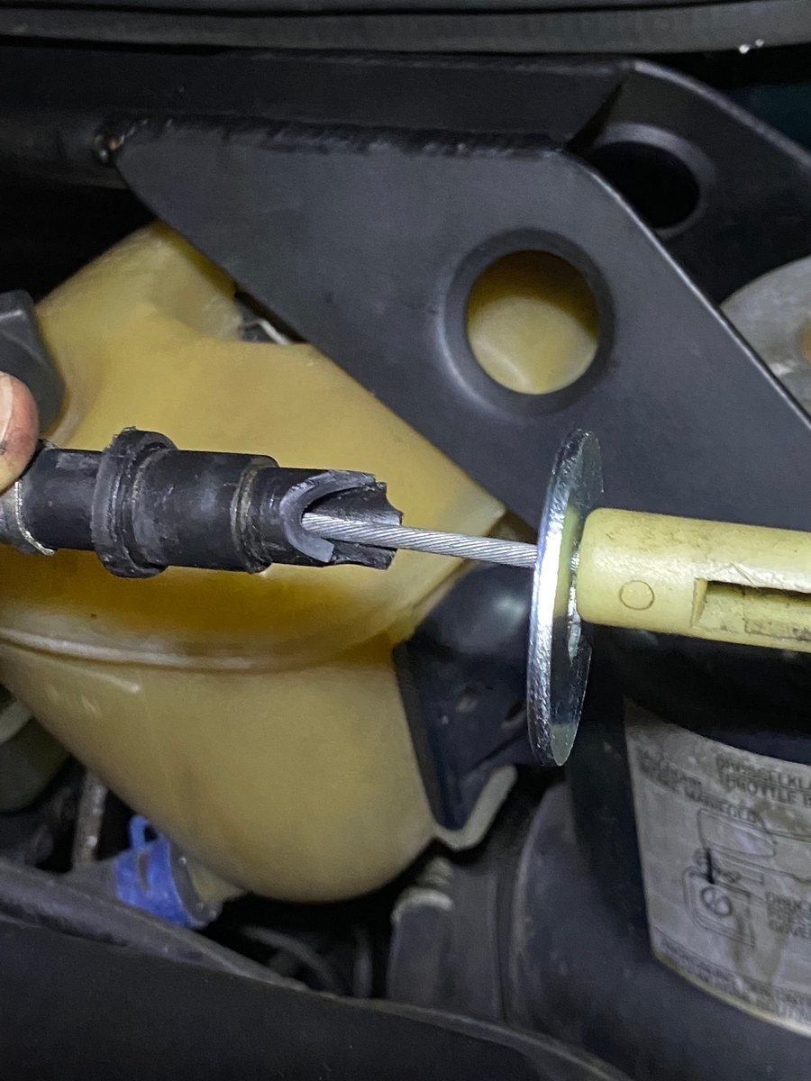 1. Das Ende des Kupplungszugs ist wohl durch die Übergangssituation mit Unterlegscheibe an Spritzwand (oder schon davor?), etwas ausgebrochen.