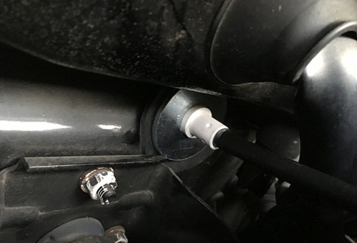 Und um das Auto wieder hier her zu fahren, könnte ich als Provisorium die Hülse durch eine Unterlegscheibe ersetzen, die Motorseitig der Spritzwand zwischen gesetzt wird.