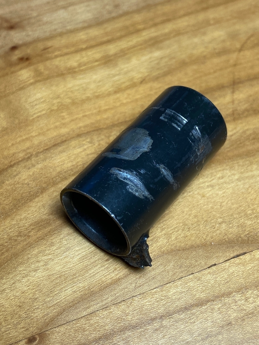 Mal ne Frage,... Wenn ich mir meine Hülse so ansehe, dann war die nicht mit nur 2 Punkten geschweißt. sonder mit einer durchgehenden Naht, die ungefähr 1/3 der Hülse ausmacht...