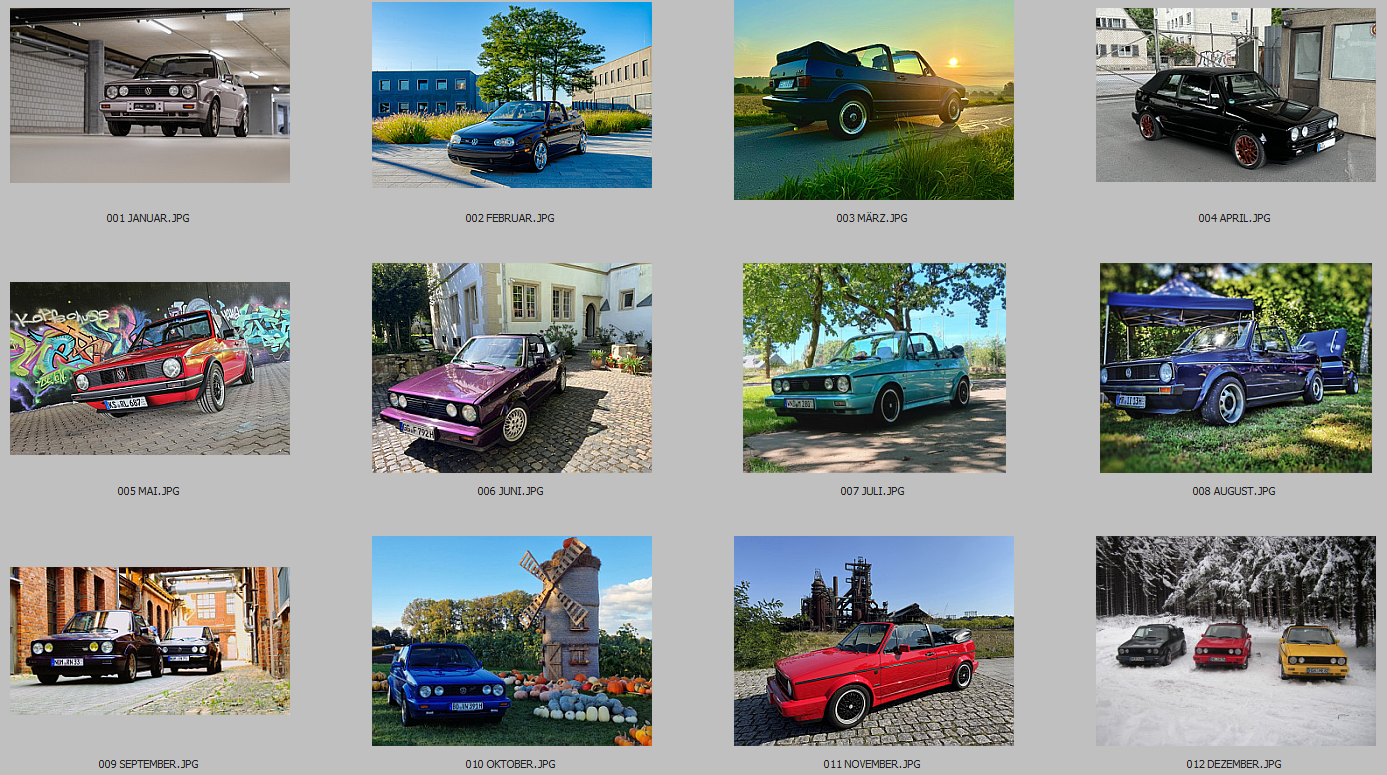 Hier nun die 12 Autos nach Monaten sortiert