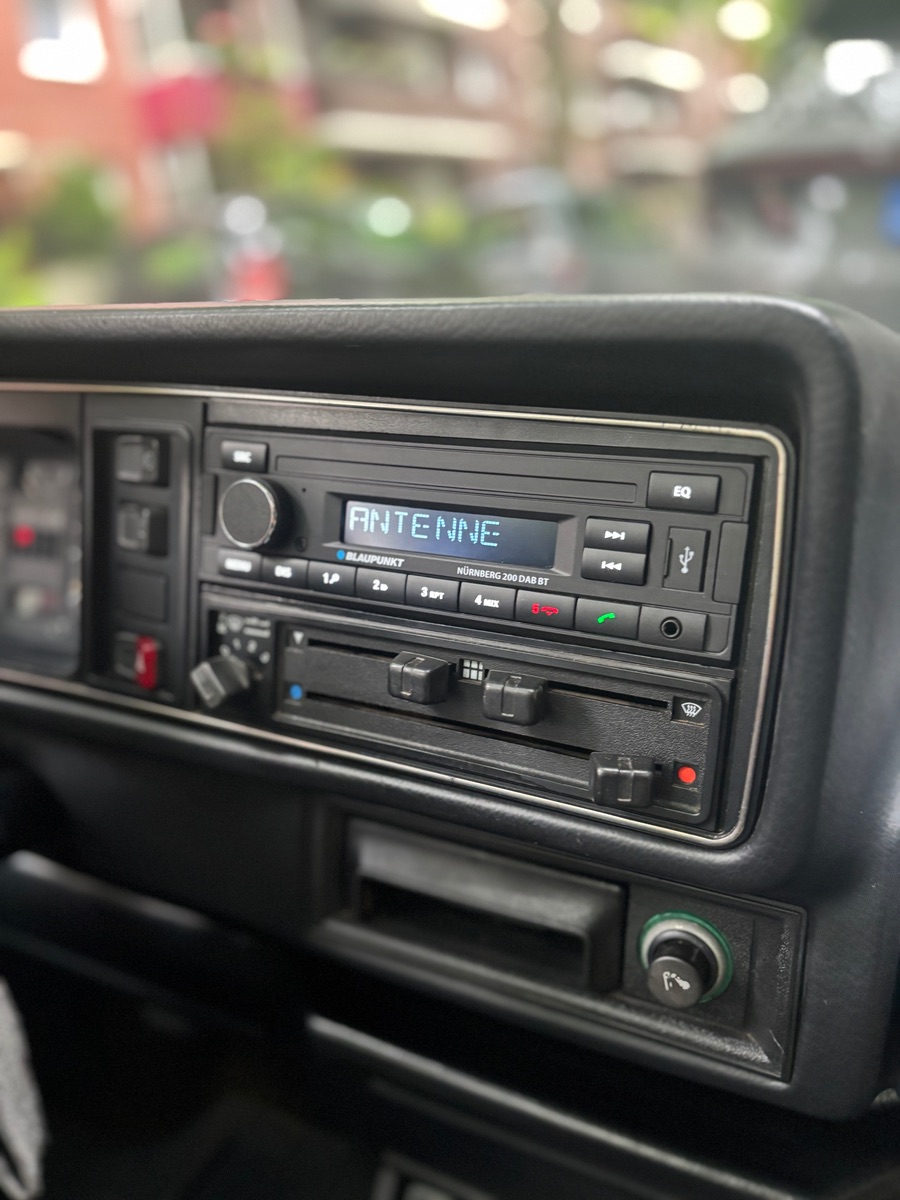 Ich hatte 10 Jahre eine Lichtorgel von Kenwood im Auto, da mein altes Gamma teilweise das Display kaputt hatte. Richtig gut und passend fand ich es nicht. Im Winter ging dann wieder die Suche nach einer Lösung los. Gefunden habe ich ein Blaupunkt Hamburg SQR 48. Das Baujahr ist wohl im Bereich 87 - 89. RDS ist noch nicht an Bord. Das Radio ist mit einem Bluetooth-Empfänger und an der Rückseite mit einem Aux Eingang ausgestattet. Den Aux brauche ich nicht, betreibe es per bluetooth, dass klappt perfekt. Meine Fischerbox mit Beleuchtung habe ich auch wieder eingebaut. Das finde ich optisch optimal 🤓.