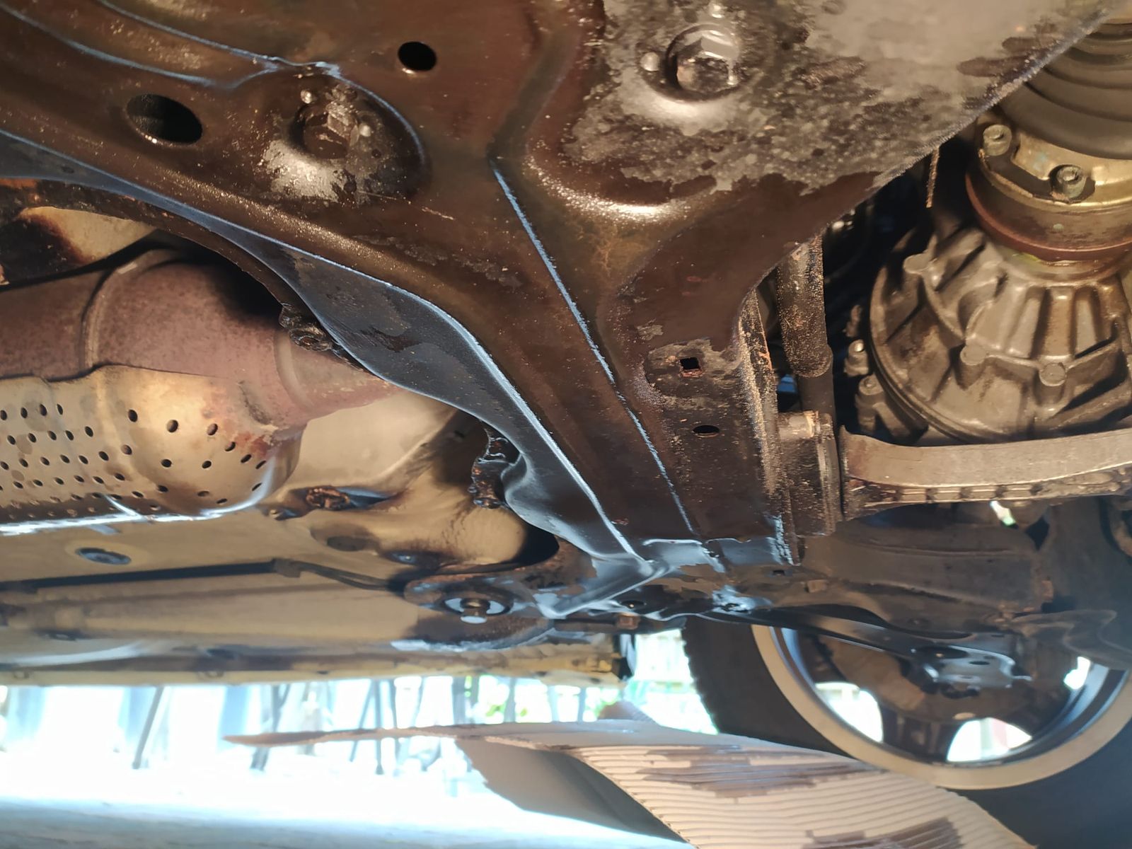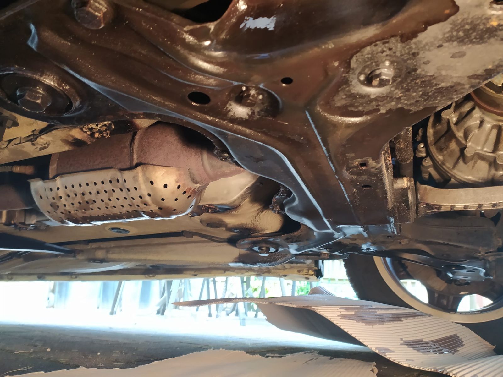 beim Behälter, sondern weiter hinten, wo die Lenkstange ist. Ich hab keine Grube oder Bühne zum Nachsehen, konnte den Wagen also nur