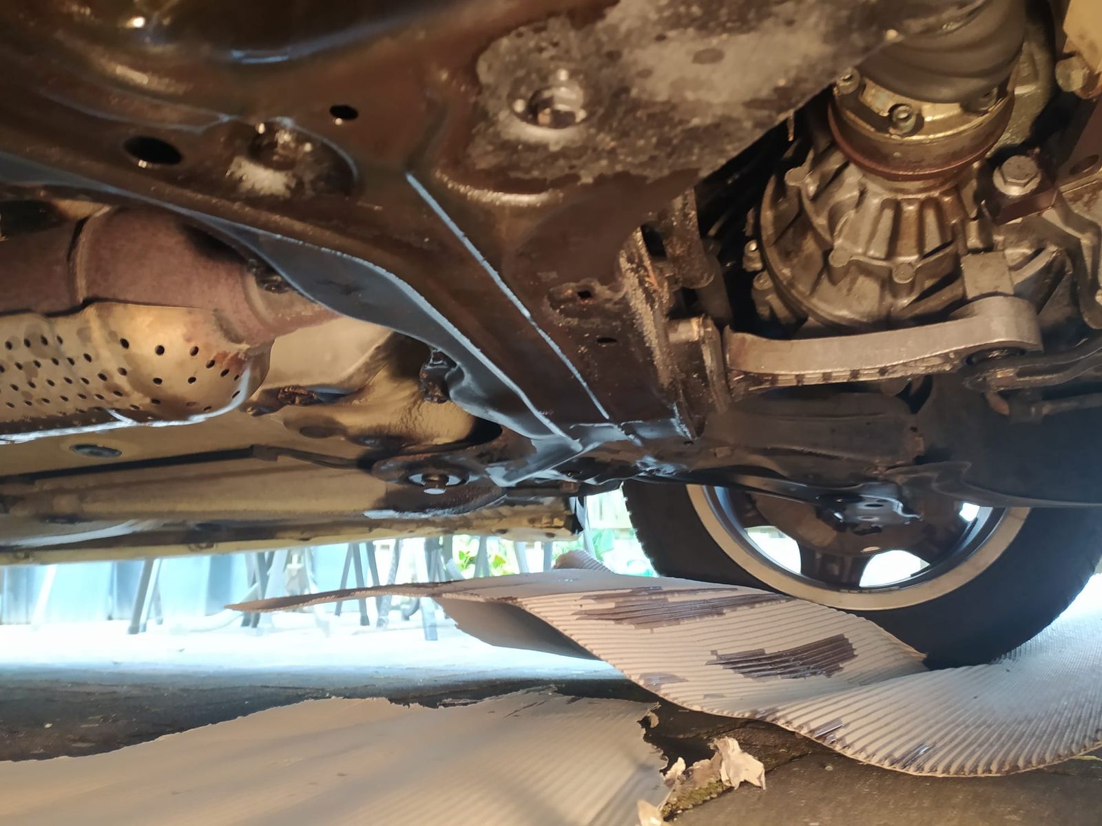 beim Behälter, sondern weiter hinten, wo die Lenkstange ist. Ich hab keine Grube oder Bühne zum Nachsehen, konnte den Wagen also nur