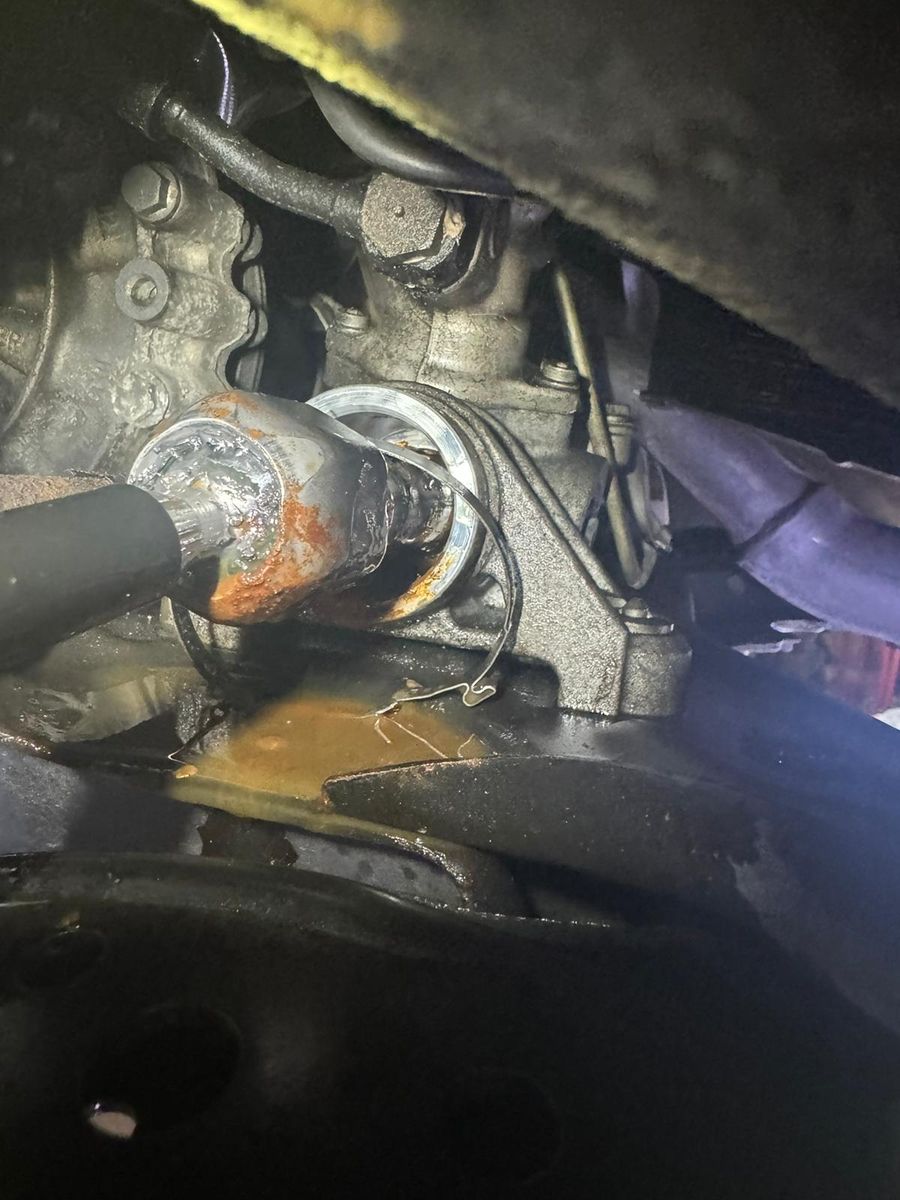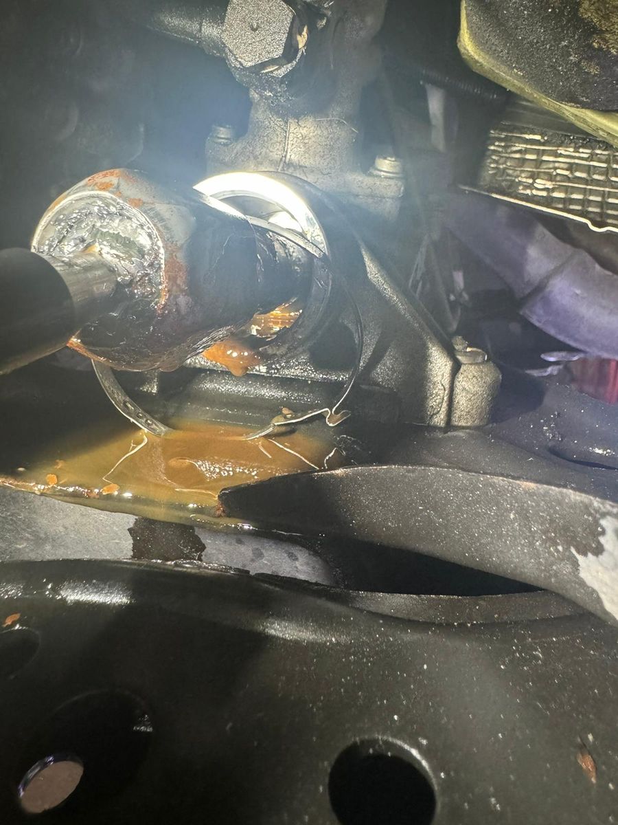 Freitag auf dem Weg zum Kunden plötzlich die Lenkung schwergängig und macht Geräusche. Hinter mir schon ne Pfütze. ![]()