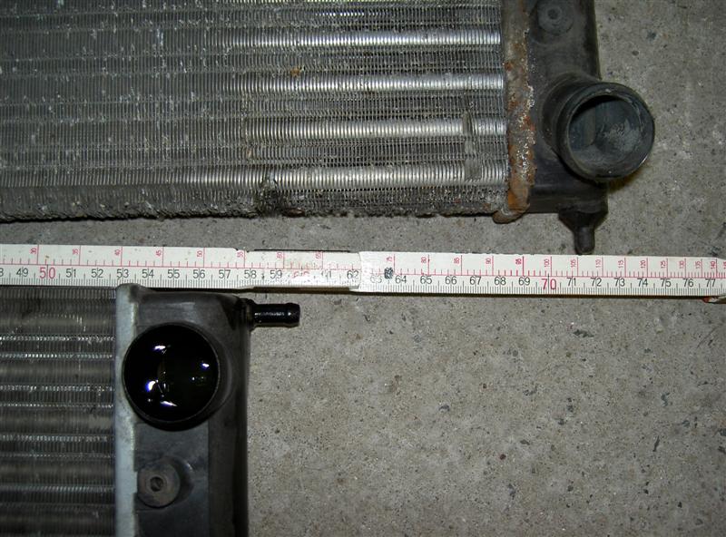 Ich habe in meinem Cabrio den 2.0-16V Motor und seit der zweiten Saison den großen Kühler vom Scirocco 16V mit den ca. 68cm Netzmaß.
