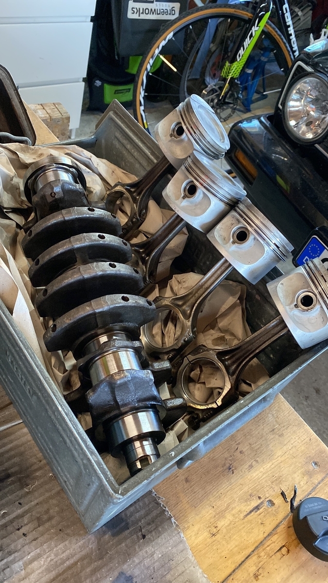Habe eine neue gebrauchte Kurbelwelle und ein Pleuel beschafft und den Motor mit komplett neuen Lagern und neuer Ölpumpe wieder aufgebaut.