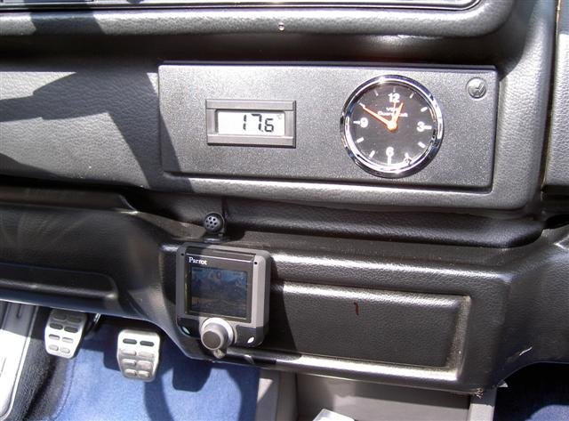 Sportline Tachoeinheit verbaut, Außentemperaturfühler (sichtbar ohne Umschalten der MFA) und alte analoge VDO-Uhr mit neuem Chromring)