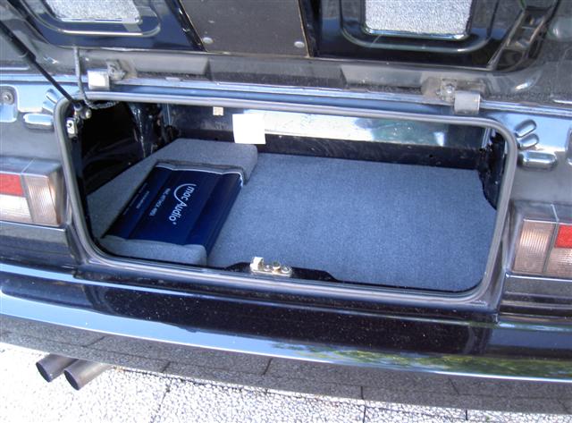 Zu sehen ist von der ganzen Maßnahme nichts. Nur der Alpine Radio und der Verstärker im Kofferraum verraten, dass hier mehr als normal verbaut ist.