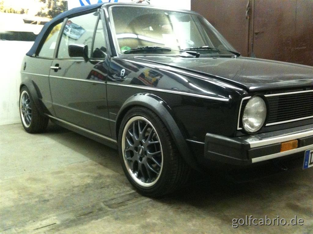 Der erste Versuch am vorletzten Freitag scheiterte jedoch, weil die an der Hinterachse montierten 25er Spurplatten knapp über der Grenze lagen, in der der Ing. ohne spezielle Freigaben die Eintragung vornehmen hätte dürfen. Er würde es auch mit 25er Spurplatten eintragen, wenn ich eine Prüfbescheinigung/Teilegutachten der Spurplatten vorlegen würde, dass die 25er Spurplatten in Kombination mit den RS764 und den 195/45-16 auf dem Golf 1 Cabrio gefahren werden dürfen...