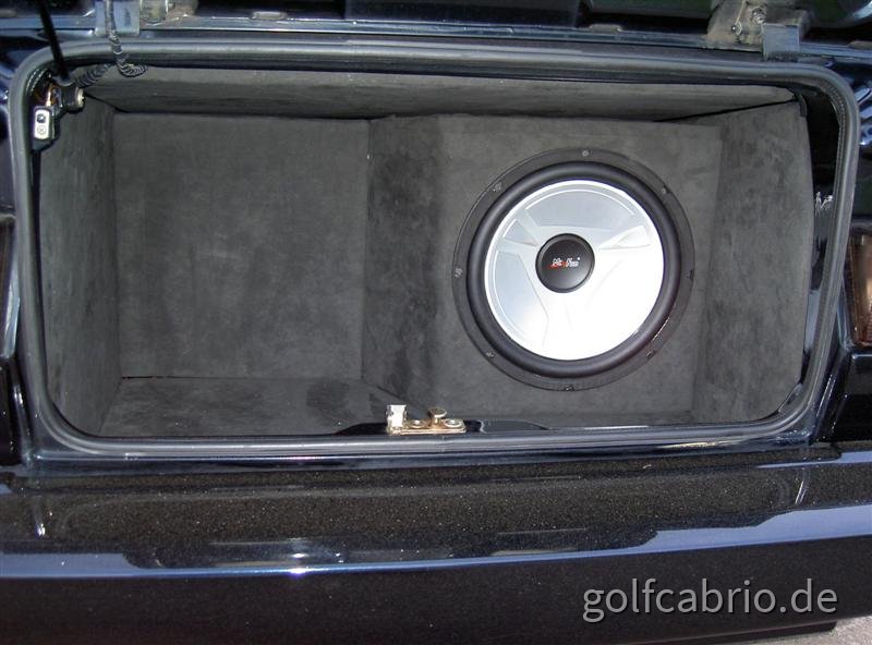Zu sehen ist von der ganzen Maßnahme nichts. Nur der Alpine Radio und der Verstärker im Kofferraum verraten, dass hier mehr als normal verbaut ist.