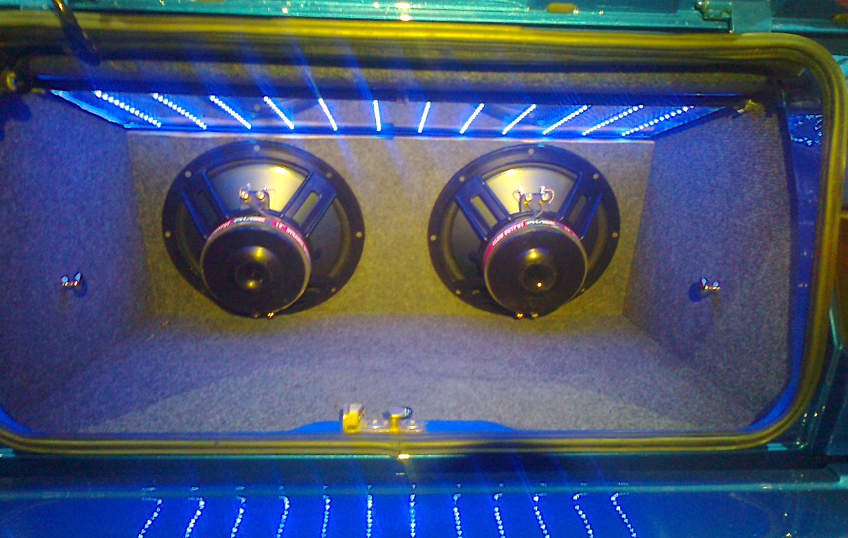 Na klar. Direkt im Kofferraum. 560 Watt Sinus auf 2 Ohm beim Sondermodell "Phönix"