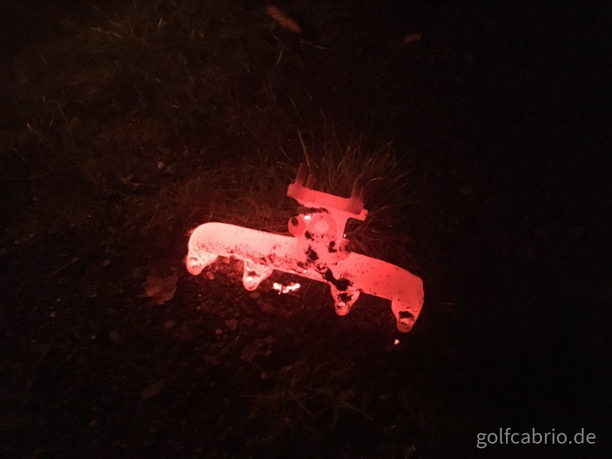 Ich habe mittlerweile zum zweiten Mal einen Stehbolzen am Krümmer verloren. Den Krümmer habe ich vor 6 Jahren (oder so) ausgetauscht, weil der alte Krumm und gerissen war. Damals natürlich dann alles neu gemacht (Dichtungen, Stehbolzen, Muttern, Gewinde zum Teil nachgeschnitten, Krümmer auch neu). Dann habe ich nach 2 oder 3 Jahren bemerkt, dass der in Fahrtrichtung rechte untere Stehbolzen komplett weg war. Krümmer war aber noch dicht. Habe dann einen neuen Stehbolzen reingeschraubt und wieder angezogen.