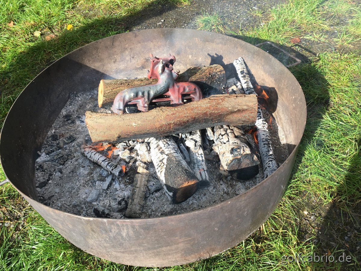 Ich habe mittlerweile zum zweiten Mal einen Stehbolzen am Krümmer verloren. Den Krümmer habe ich vor 6 Jahren (oder so) ausgetauscht, weil der alte Krumm und gerissen war. Damals natürlich dann alles neu gemacht (Dichtungen, Stehbolzen, Muttern, Gewinde zum Teil nachgeschnitten, Krümmer auch neu). Dann habe ich nach 2 oder 3 Jahren bemerkt, dass der in Fahrtrichtung rechte untere Stehbolzen komplett weg war. Krümmer war aber noch dicht. Habe dann einen neuen Stehbolzen reingeschraubt und wieder angezogen.