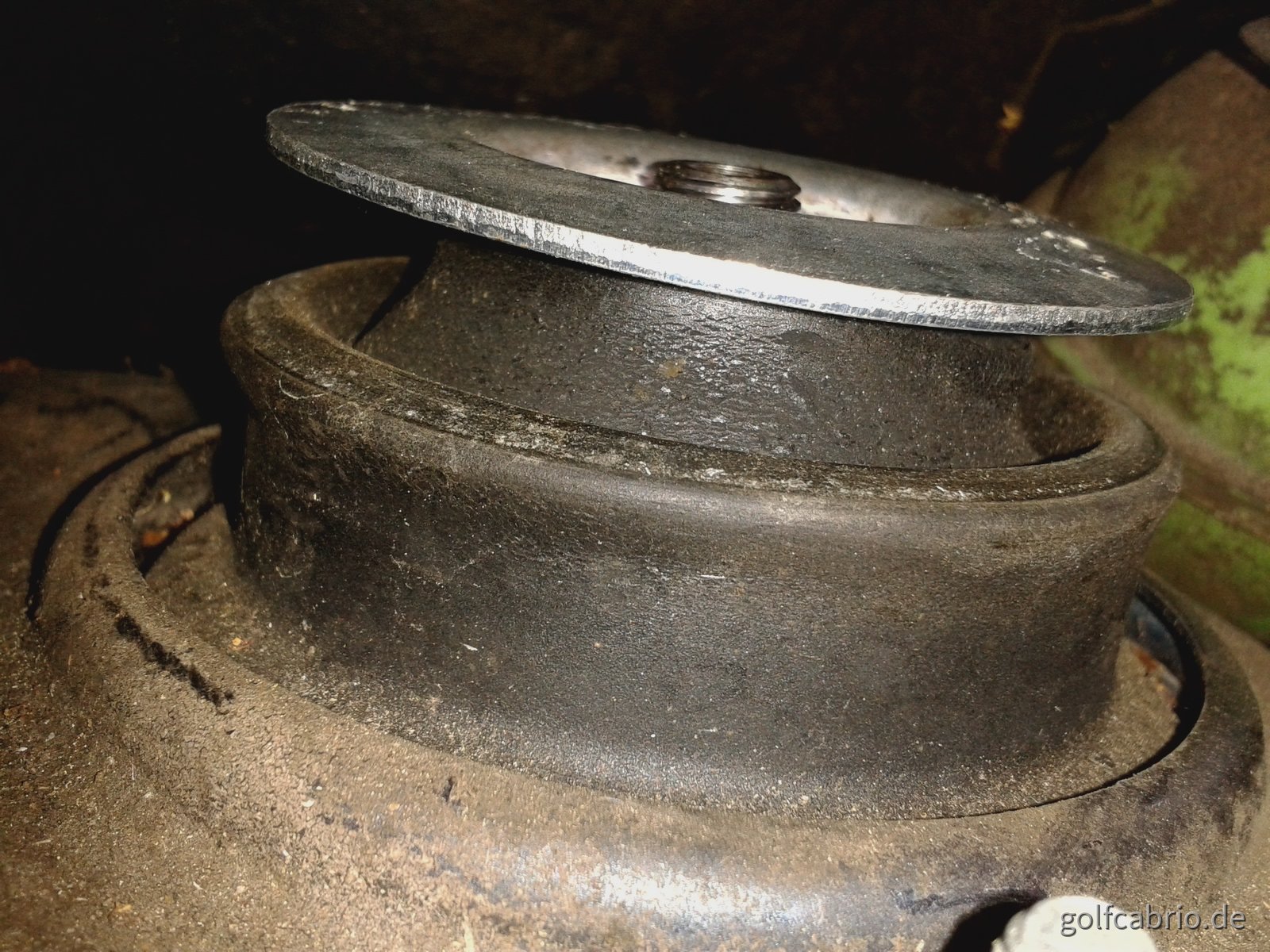 Bei genauerem Hinsehen wurde deutlich, dass sich die Schraubenfeder bei Volleinschlag etwas bewegt und das dumpfe Geräusch verunsacht.