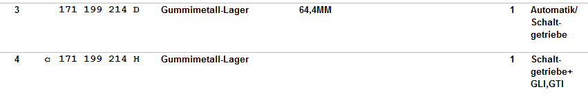 Für den GTI / GLI soll die Teilenummer "171199214H" passen: