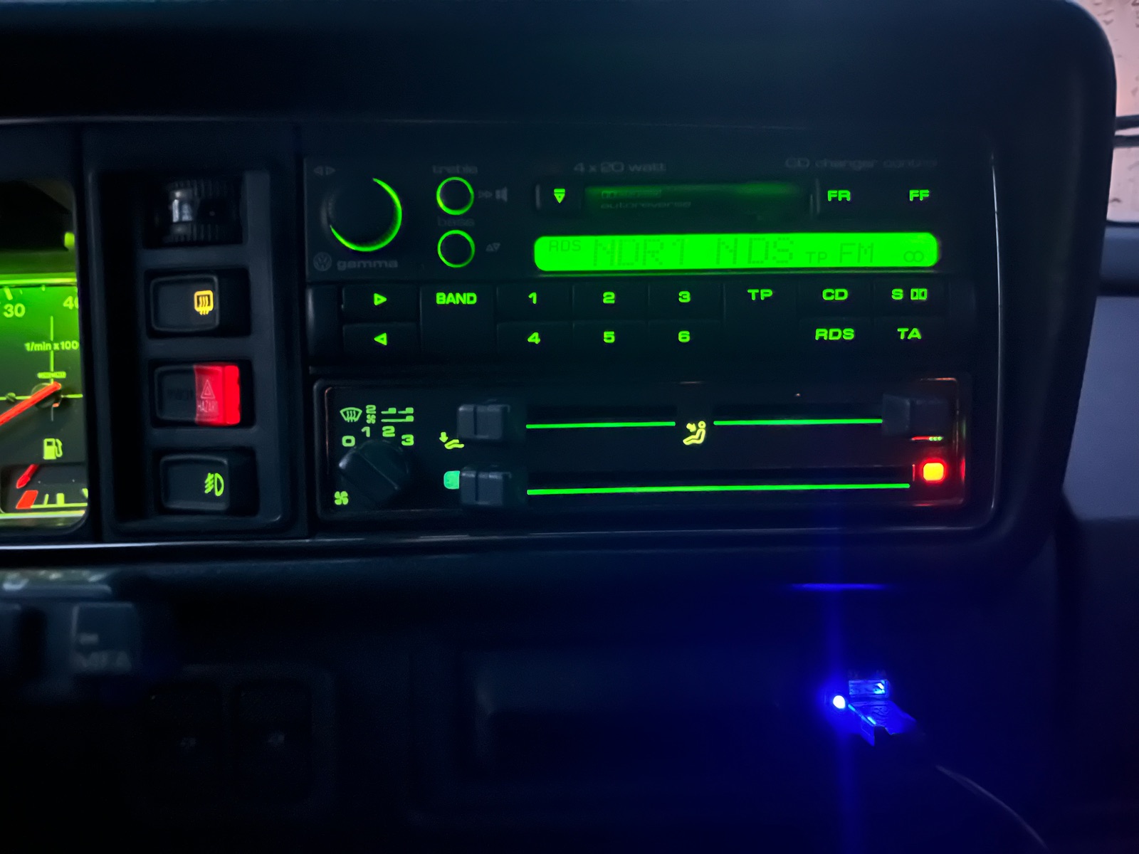 Heute dann habe ich mich aufgerafft, diesen einzubauen. Also den Aschenbecher aus dem Armaturenbrett ausgebaut, zerlegt und die Öffnung vom Zigarettenanzünder etwas aufgeweitet, damit der USB-Charger passt. Diesen habe mit der beiliegenden Mutter am Aschenbechergehäuse fest verschraubt.