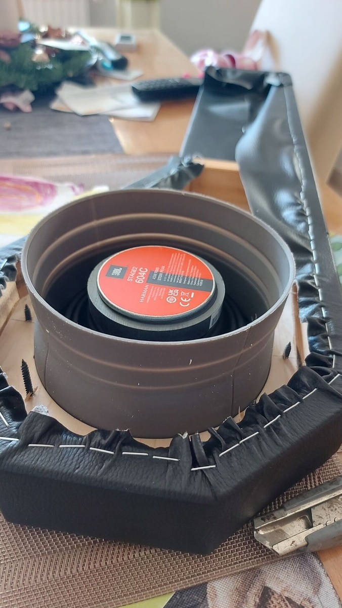 Es geht voran, heute die Fahrerseite fertig bezogen, sind sogar recht gleichmäßig geworden. 😊 Jetzt folgt die letzte Herausforderung, die Löcher für die Lautsprecher und Einbau der Selbigen. Halte euch weiter auf dem Laufenden.
