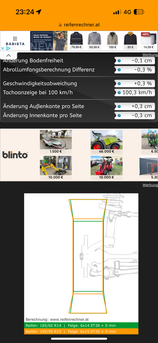 Die alten Hasen hier wir z.B. MyGolf1Cabrio oder Ulridos hatten schon Recht, ohne Karosseriearbeiten geht da nix wegen der Felgenbreite, der Reifenrechner, den MyGolf1Cabrio verlinkt hat, zeigt es auch. Unten hab ich mal ein Bildchen eingestellt im Vergleich Avusfelge zu den von mir gewählten 7x15 ET20 mit 185er Reifen an der Hinterachse. Außenkante ist dann halt 3,1 cm weiter raus, das kann nicht einfach so passen.Zum Vergleich 6x15 ET35 mit 195er Reifen, da ist die Außenkante nur 0,3 cm weiter raus, Und dann noch zum Vergleich mit 15 mm Spurplatte, Außenkante 1,8 cm weiter raus, das passt auch noch.
