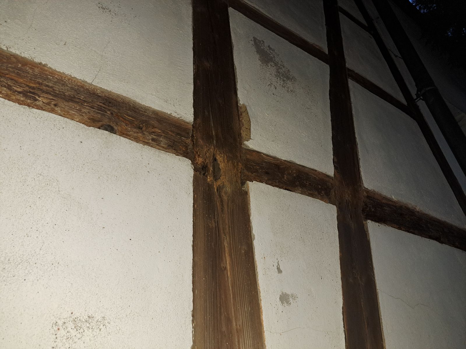 Leider habe ich sehr viele kleine Löcher im Balken entdeckt. Einige Balken sind auch schon ganz schön angefressen.