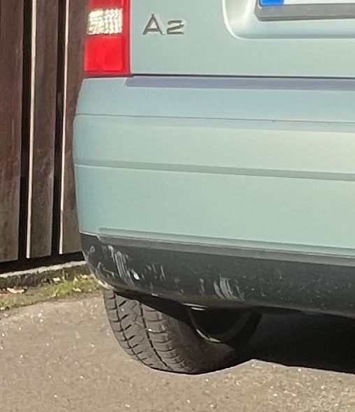 Ich habe eine zerkratzte Stosstange welche unten in einem matten anthrazit (die Farbe heißt bei Audi "Samtschwarz" und oben in Wagenfarbe lackiert ist. Siehe Foto.