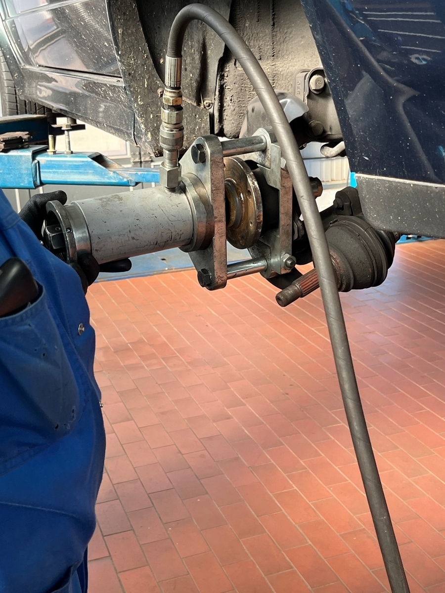 Beim 3l-Lupo und Audi A2 bekomme ich immer Bauchschmerzen, wenn ich nur die Presse zur Verfügung habe. Die haben Alu-Radlagergehäuse und keine plane Auflagefläche. Bißchen zu viel Druck und schon ist die Schiete hin.