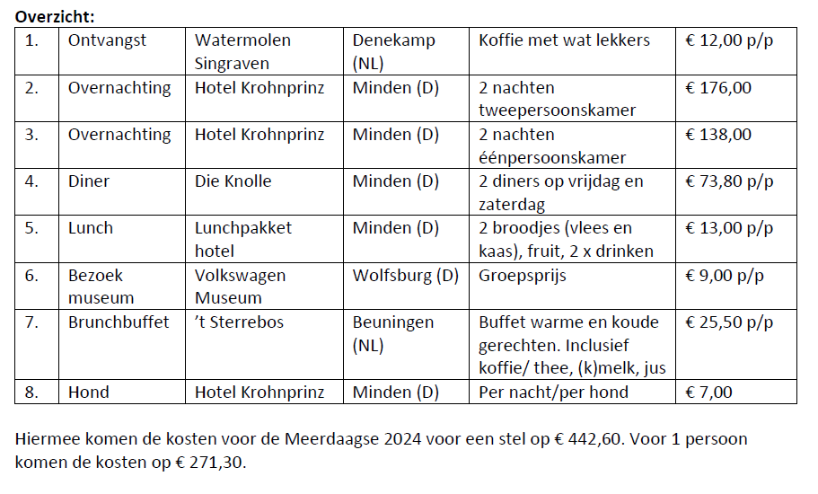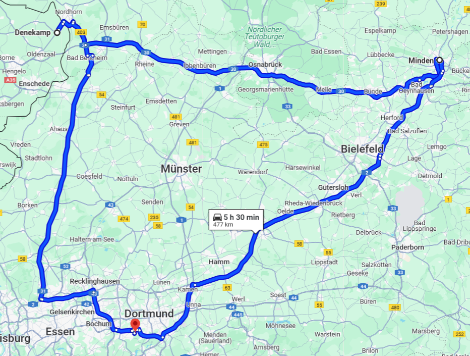 Wir starten am Freitag (30.05.) im niederländischen Denekamp und fahren anschließend nach Minden, wo wir voraussichtlich im Hotel Kronprinz übernachten werden. Wir haben uns für Denekamp entschieden, weil unsere Mitglieder aus den gesamten Niederlanden kommen. Denekamp liegt in der Mitte an der deutschen Grenze.