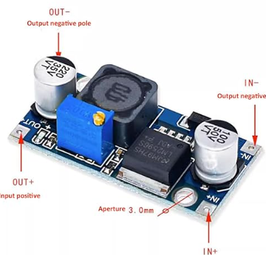 Da man für Mikrocontroller wie Arduino eine stabile 5V oder 3,3V Quelle benötigt, habe ich mich für ein DC-DC Spannungswandler Modul mit dem bekannten LM2596 Baustein entschieden. Diesen hatte ich in der Vergangenheit schon öfters genutzt und gute Erfahrungen gemacht: mehr als ausreichend belastbar für einen Arduino, wird kaum warm da recht effizient und mit rund 150kHz Schaltfrequenz gut gerüstet um Störungen durch das Bordnetz zu egalisieren. Als fertiges Modul mit Weitbereichseingang bis 35v: