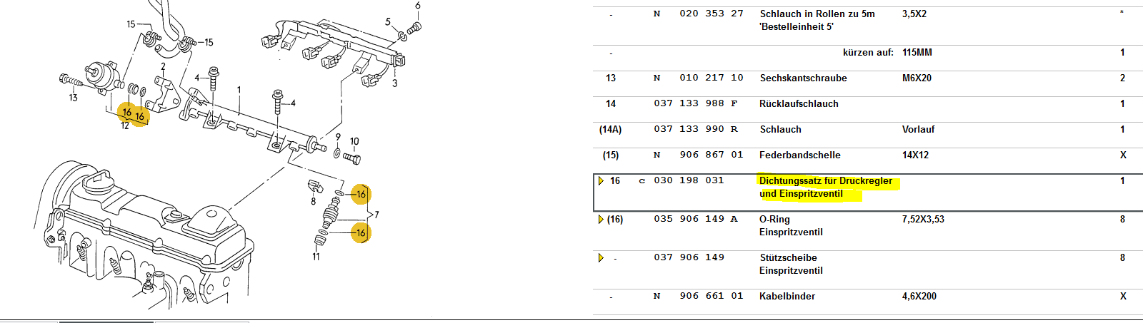 Für meinen 1,8 von 1991 bin ich auf der Suche nach 8 Dichtringen für das Einspritzventil.