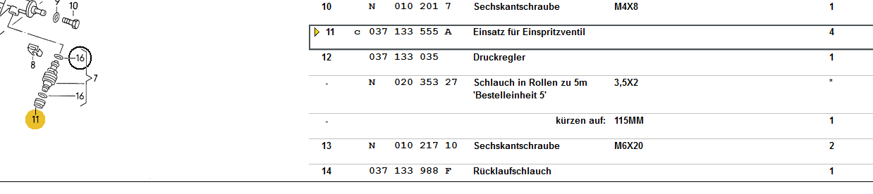 Die Düse hat die VW-Nummer 037906031E.