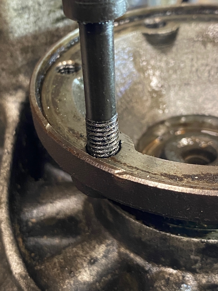- Um für den Ausbau die Flanschfeder zu spannen, musste ich sehr viel Kraft auf die Gewindestange geben. Hatte schon Sorge das Gewinde reißt ab. Ging wirklich sehr schwer. Jetzt hat der Flansch, dort wo die Nüsse untergelegt waren, zwei deutliche Macken abbekommen.