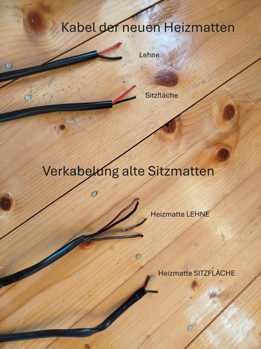 Von der Matte der Sitzfläche gehen zwei Kabel ab, genau wie bei der neuen Matte.