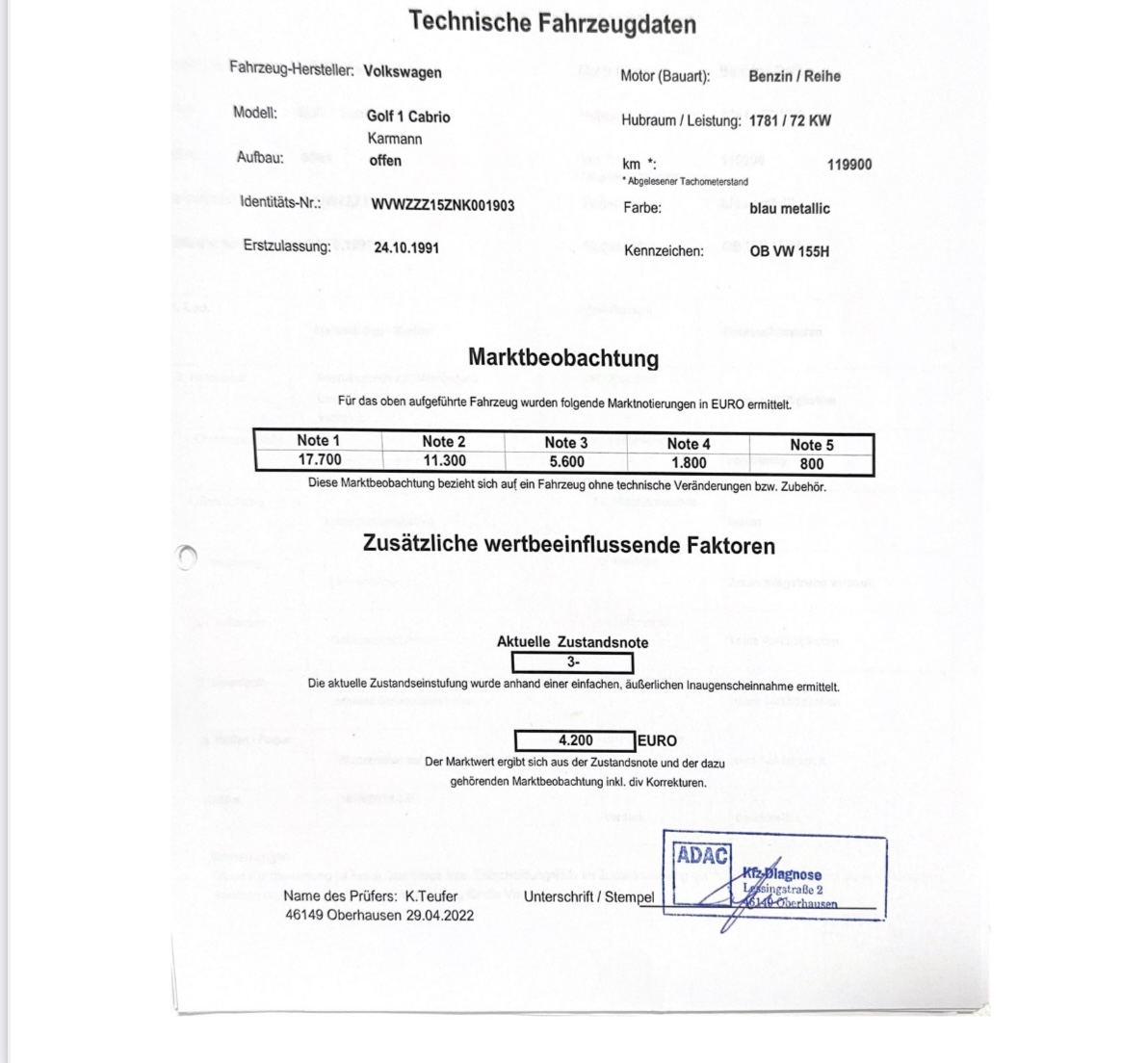 Dauert ja noch ein paar Tage, aber noch Voreinschätzung des Prüfers gibt es eine glatte 2 .... da bin ich sehr zufrieden, wenn es so ist. Auf den aktuellen Wiederbeschaffungswert bin ich sehr gespannt.