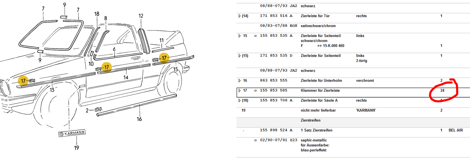 G1C: Welche Ersatzteilnummer haben die Zierleistenclips und wieviele brauche ich?