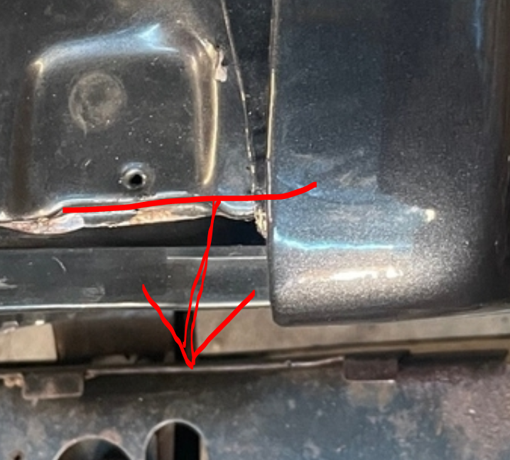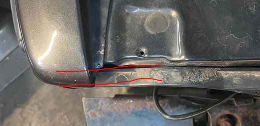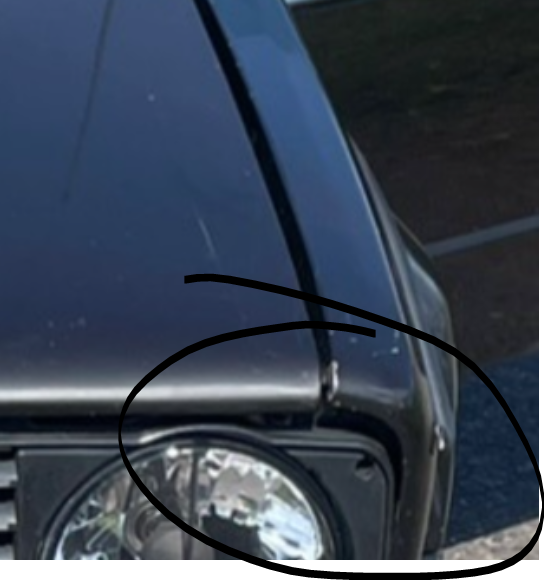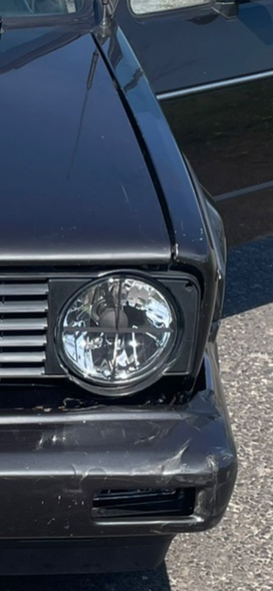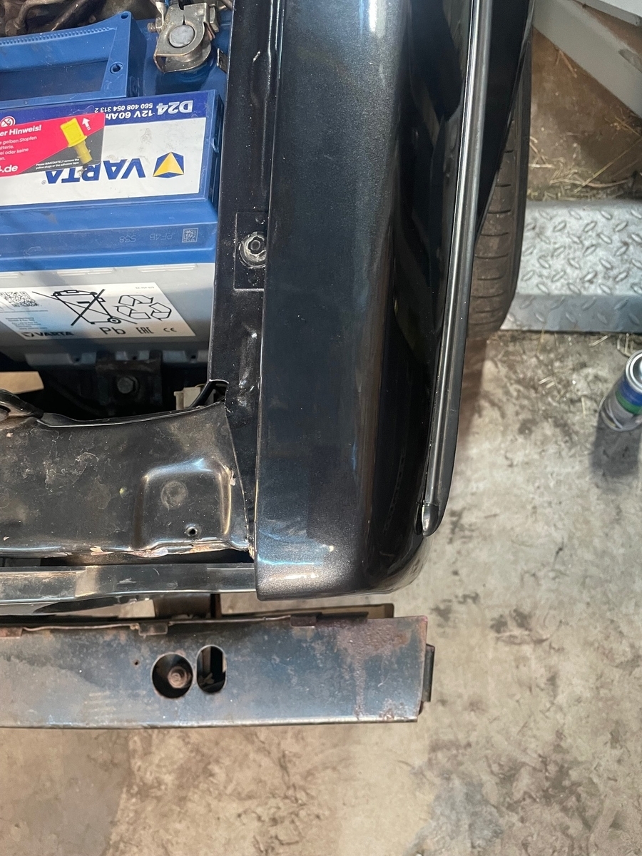 Sorry für die ungenaue Beschreibung. Der Kotflügel steht vorne, links überm Scheinwerfer ca 7mm über. Der Vorbesitzer hatte wohl mal einen Treffer und die Frontmaske ist unten etwas verformt, aber nicht so stark.