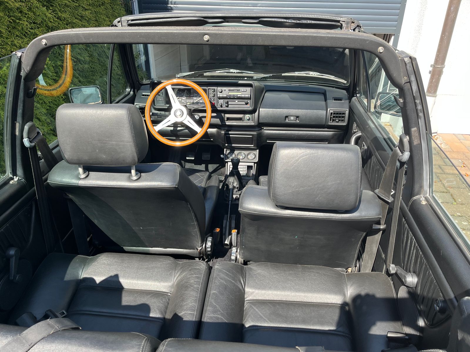 Komplett schwarz, außen und innen auch der Dachhimmel.