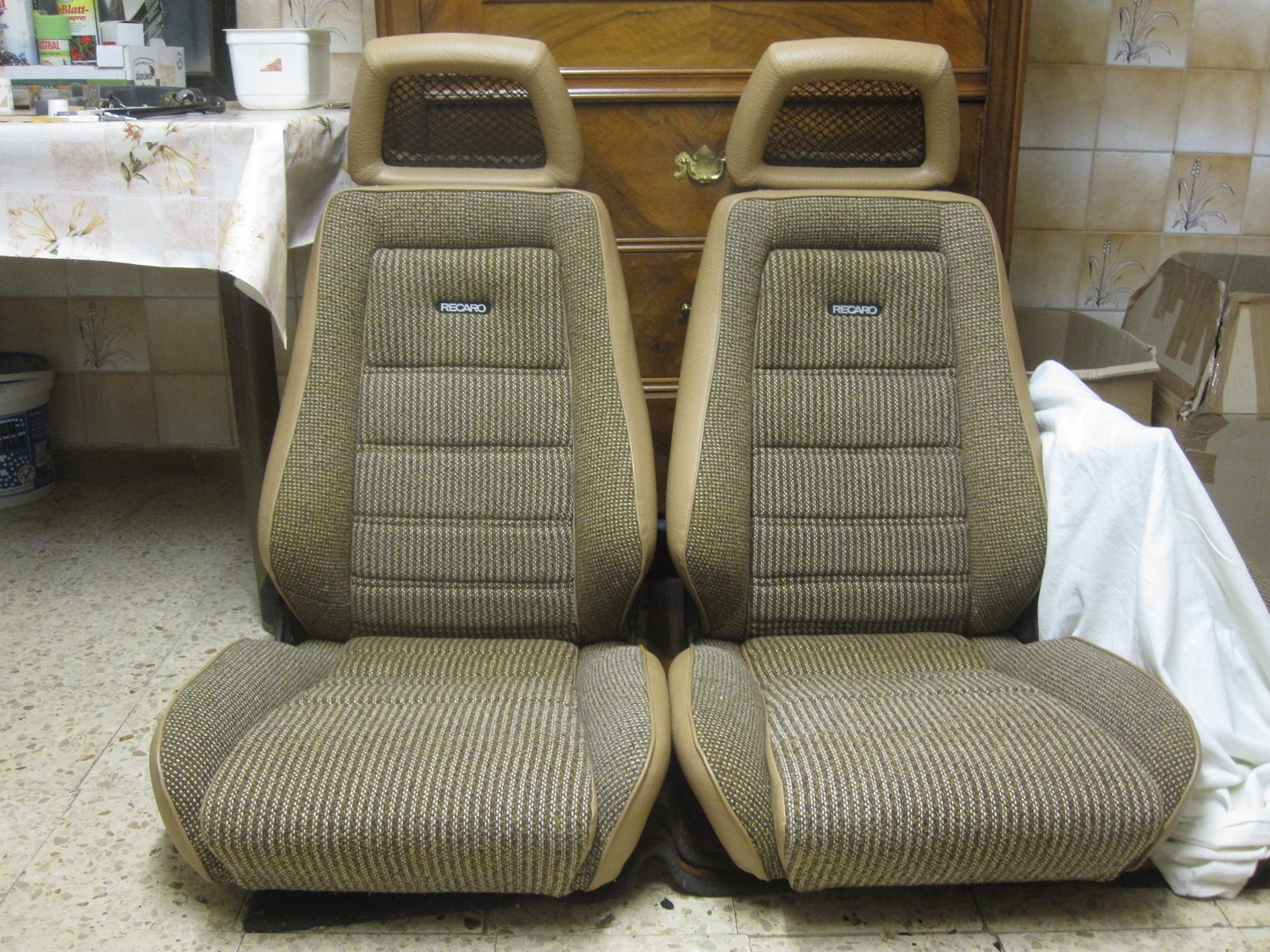 Die Recaros aus Manta und/oder Kadett habe ich vor drei Jahren mit Golf 1 Stoff eingewickelt.