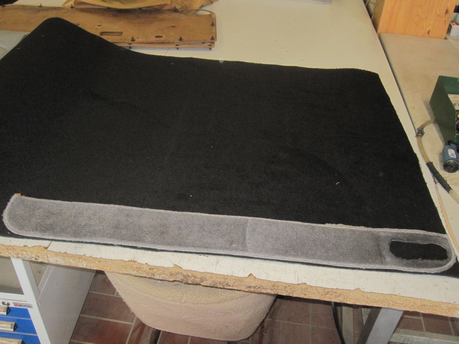 die Flauschbandstückchen wieder annähen und an die Vorderkante der Persenning dann Klettbandstreifen annähen.