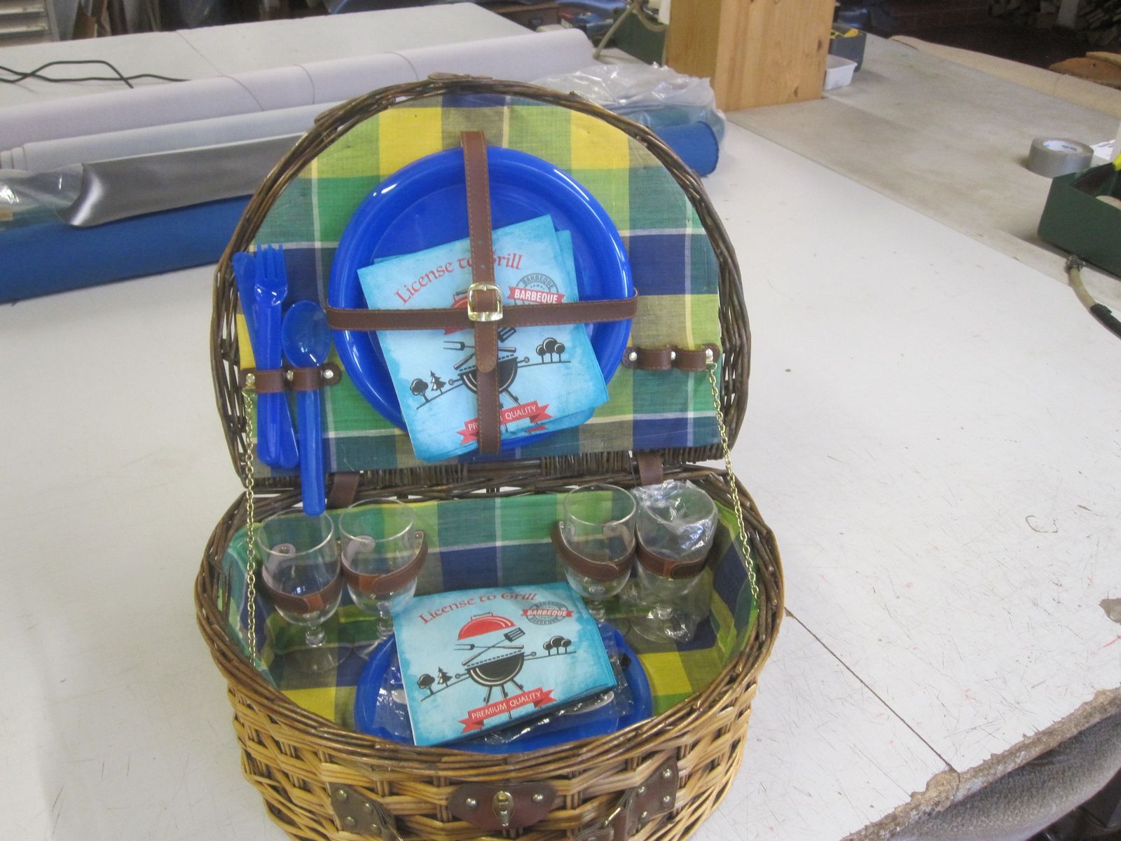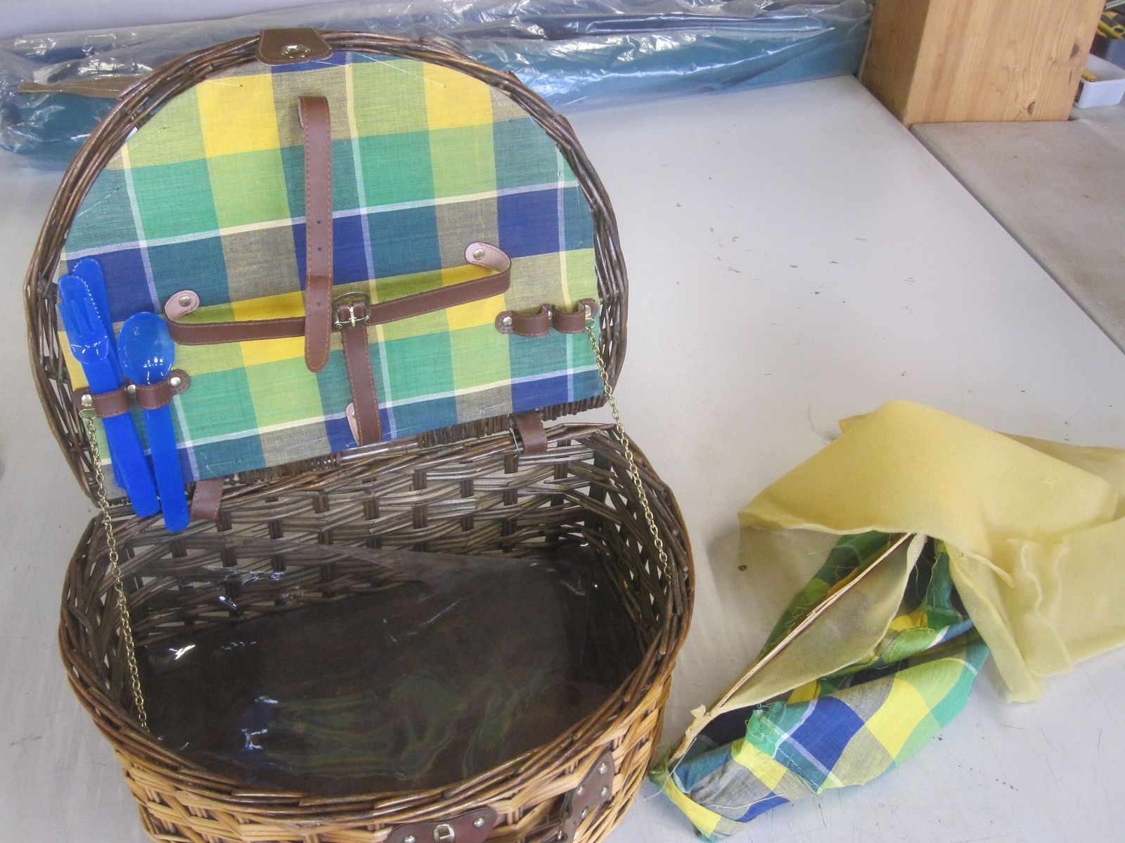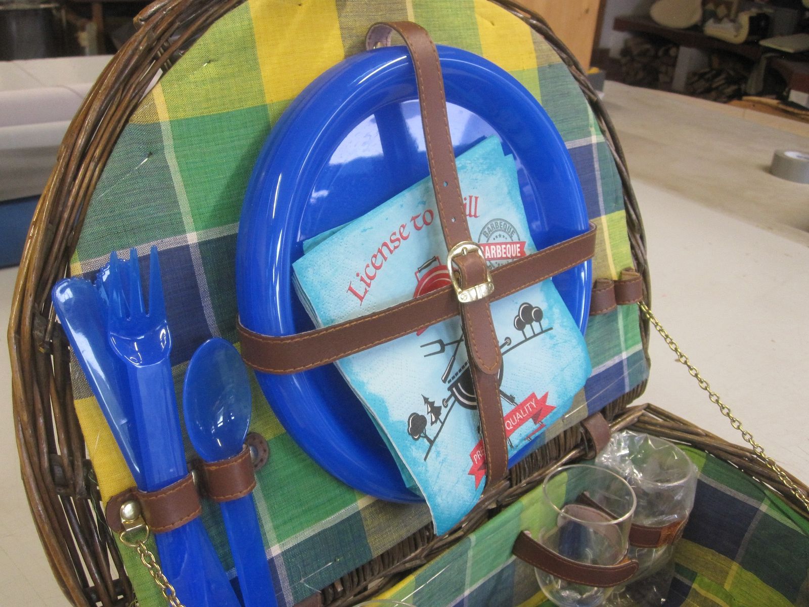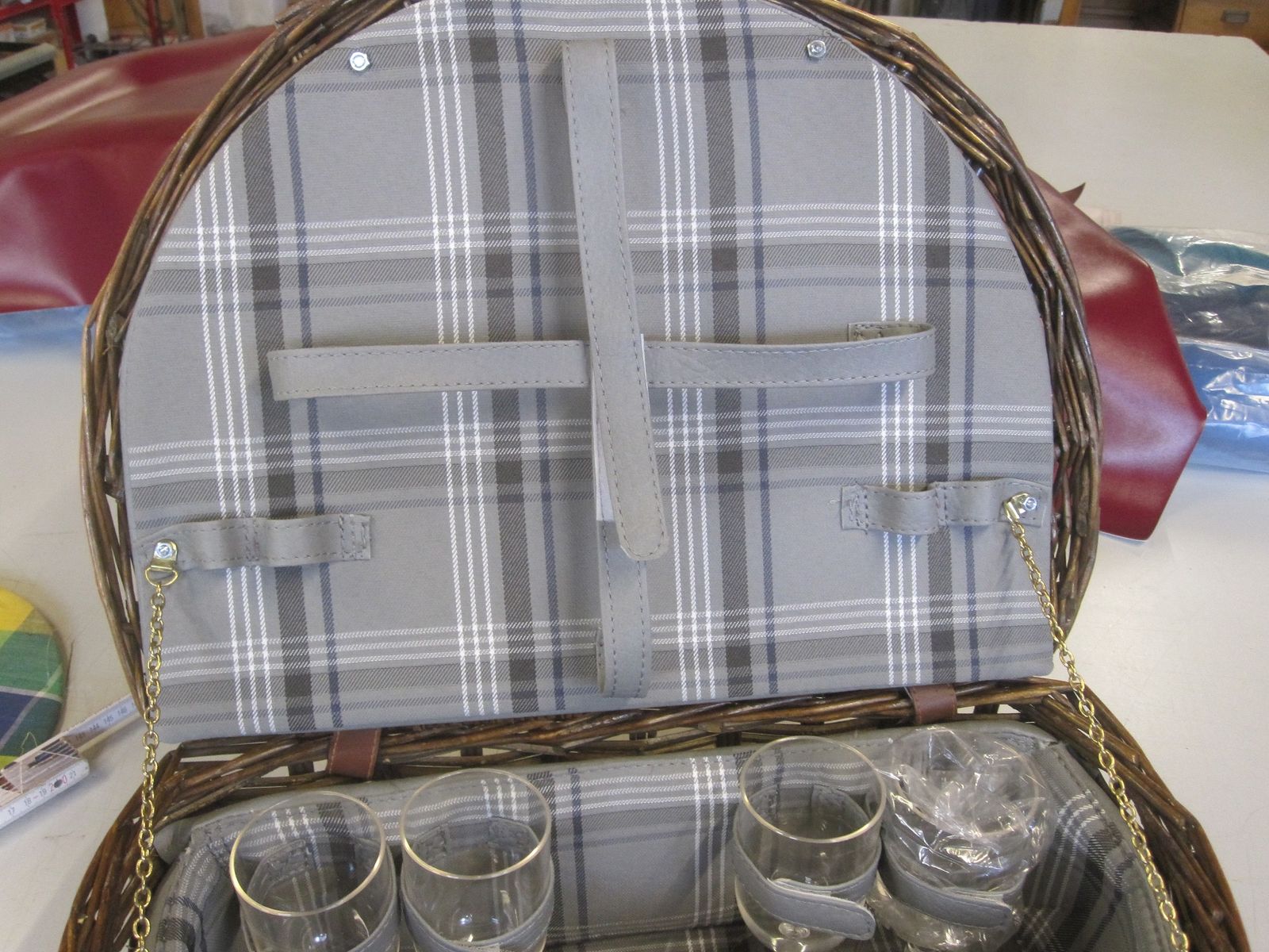 Und dann kam er noch mit dem Picknickkorb an. Da war ich total überrascht. Was für ne geniale Idee. Als wäre das nicht schon genial genug, gibt es noch diese 2 Stücken mit Klettverschluss damit der im Kofferraum nicht verrutscht.