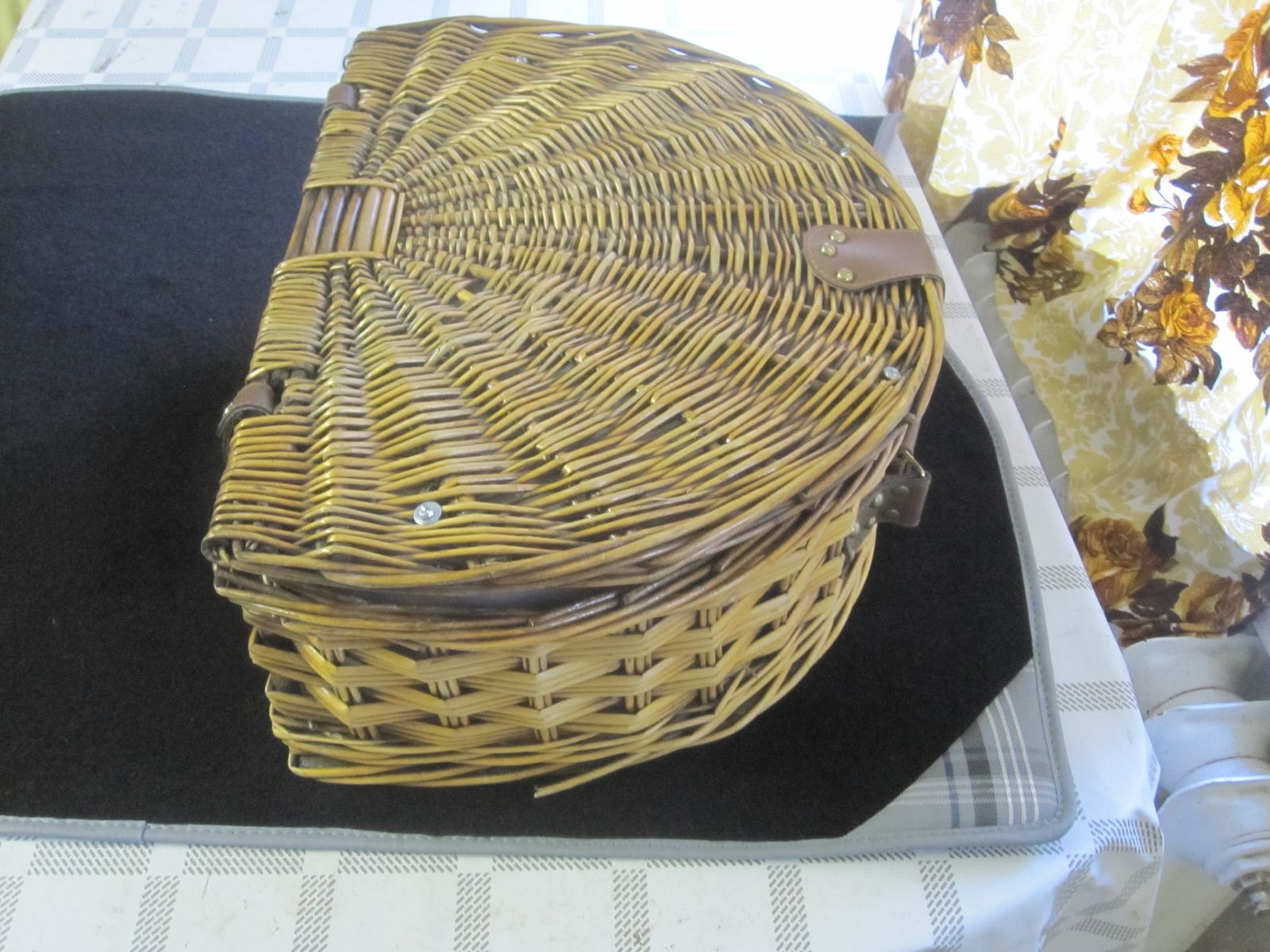 Eine Wolldecke und ein Picknickkorb.
