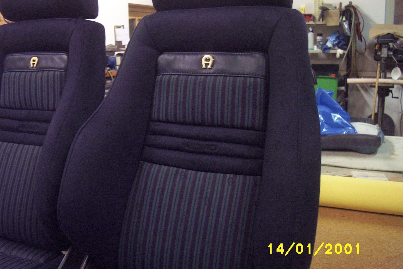 In der Lehne wollte ich bei diesen Recaros unbedingt die drei Recaro-Pfeifen haben.