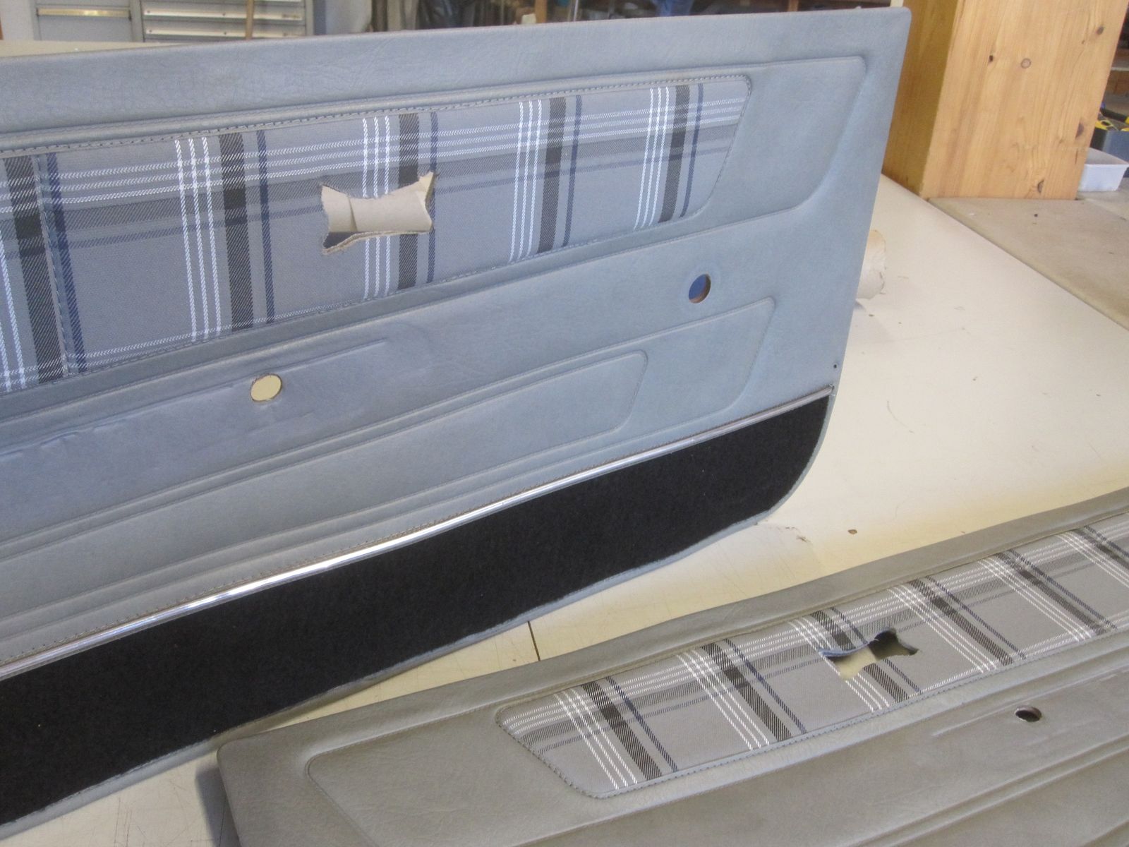 Die beiden Teppicheinsätze wurden dann in die Türverkleidungen eingenäht.