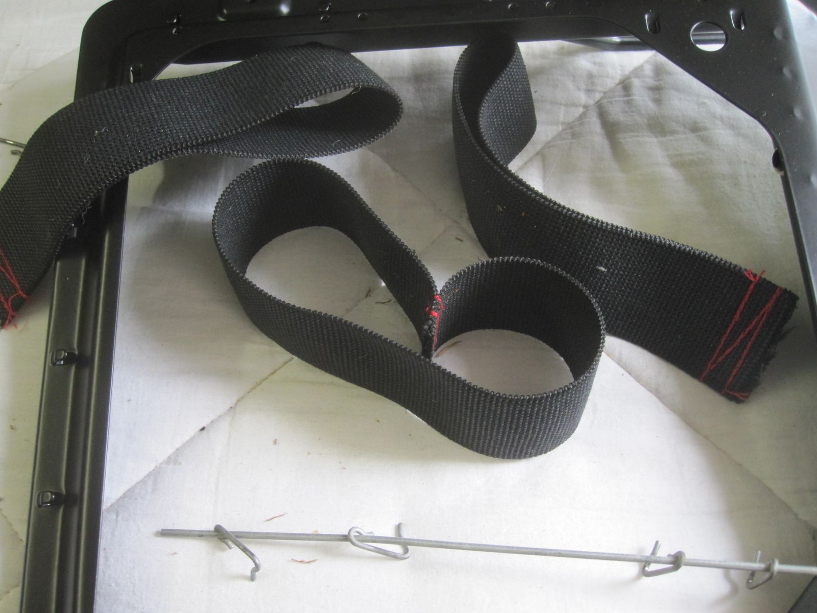 da ich mit meiner Polsterklammerzange einfach nicht durch das Polster und dann in die Metallschlaufen komme.