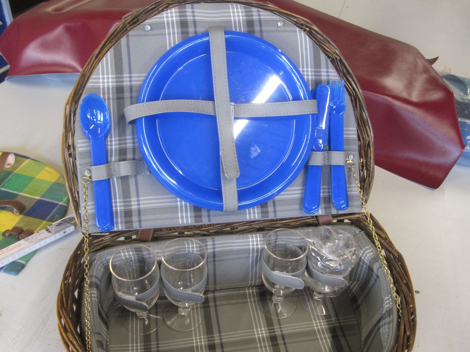 Und dann kam er noch mit dem Picknickkorb an. Da war ich total überrascht. Was für ne geniale Idee. Als wäre das nicht schon genial genug, gibt es noch diese 2 Stücken mit Klettverschluss damit der im Kofferraum nicht verrutscht.